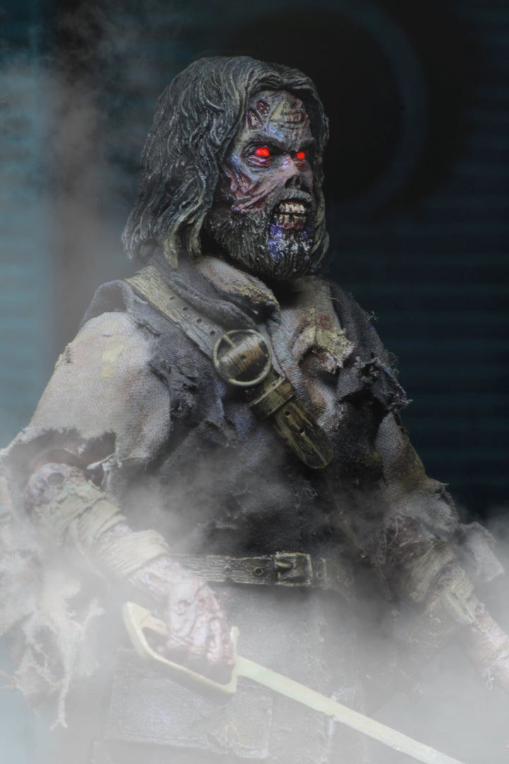 Bolt your doors... lock your windows... there's something in the fog! From John Carpenter's 1980 horror film The Fog, the vengeful ghost of Captain Blake joins NECA's clothed action figure line. Blake is dressed in tattered fabric uniform and comes with a sword accessory that fits in a sheath at his belt. Blister packaging with resealable protective clamshell features new artwork created just for this release.