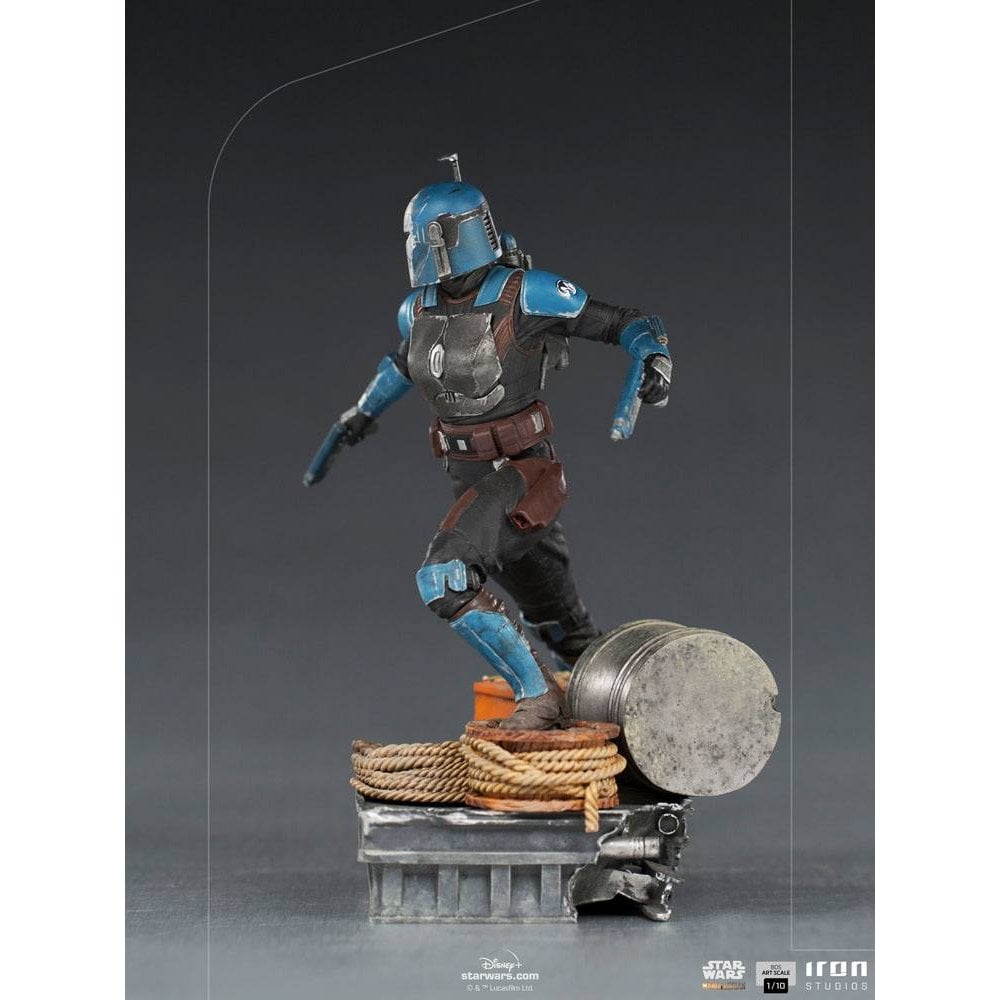 Iron Studios` line of statues from The Mandalorian series, featuring Mando and Grogu (Baby Yoda) Art Scale 1/10 and Legacy Replica 1/4, and Moff Gideon Art Scale 1/10 (all already available for Pre-Order), adds one more to the incredible line, the "Bo-Katan BDS Art Scale 1/10 - The Mandalorian - Iron Studios" statue. Inspired by her first appearance in the live-action, in a defensive position and ready for action, she wields her blaster pistols over a diorama base filled with elements such as ropes, a box, and a barrel, which allude to the vessel`s deck in the waters of Trask, where she flies in with her jetpack and lands to save Din Djarin. Faithfully portraying her armor, the figure presents the warrior with her helmet, preserving the mysterious Mandalorian aura... This is the way!