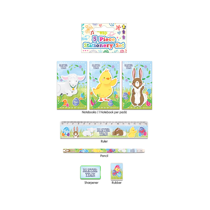 Perfect for Easter cards, drawings, or journaling, this set includes a pen, pencil, eraser, sharpener, and a notepad. Whether for school, home, or Easter activities, the Easter Stationery Set is a great way to inspire creativity and celebrate the season!