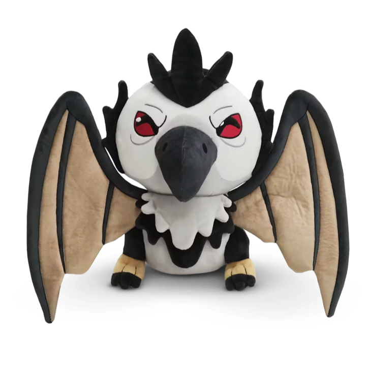 Bloodwing has swooped into the fray to help out with their Youtooz debut! Standing at 9 inches tall with piercing red eyes peering through a menacing frown and sharp curved beak at the center of their white face, long wings extend from either side of their body as thick black and white plumage puffs out from around their neck and a short tail pokes out from the back. This plush is packed to the seams with 100% PP cotton and is made of the softest minky material, absolutely perfect for cuddling or helping you in battle!