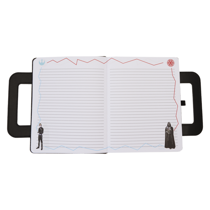 Even the galaxy’s heroes require a snack or two. Satisfy your appetite for adventure with the Loungefly Return of the Jedi Lunchbox Journal! Taking the shape of a rectangular lunchbox, this notebook shows scenes from Star Wars: Episode VI – Return of the Jedi. The front displays a memorable moment with R2-D2 and C-3P0 while the back shows an Ewok on a speeder bike. Open the journal to reveal a place to write your name, movie posters in the centerfold, and Luke Skywalker™ and Darth Vader™ framing the lined note pages. You’ll even find a sticky note pack of R2-D2 shaped like a vintage thermos! With plenty of room to store your important information, this journal makes the perfect ally for any mission.