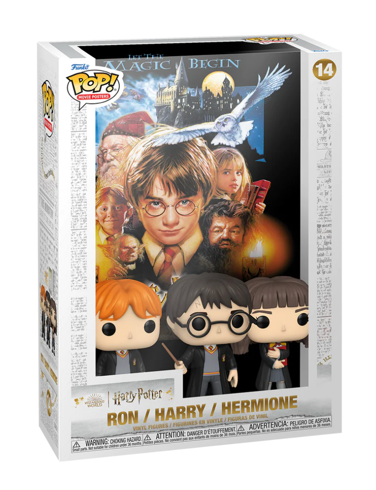 Life took an extraordinary turn for Harry Potter™ the day he received his Hogwarts™ acceptance letter from Hagrid™. Now, he is ready to learn all about the wizarding world with his new friends, Ron Weasley™ and Hermione Granger™! Don your robes and head to class with Pop! Ron, Pop! Harry, and Pop! Hermione as they explore the countless wonders and mysteries of their school. Celebrate the beginning of Harry’s journey with this iconic Harry Potter and the Sorcerer’s Stone™ Pop! Movie Poster featuring Harry and many of the film’s most memorable characters. Pop! figures are adhered to backdrop to ensure scene integrity and ease of display. Approximate dimensions of protective case: W 27.9 cm x H 43.1 cm x D 13.9 cm
