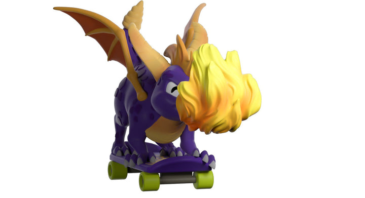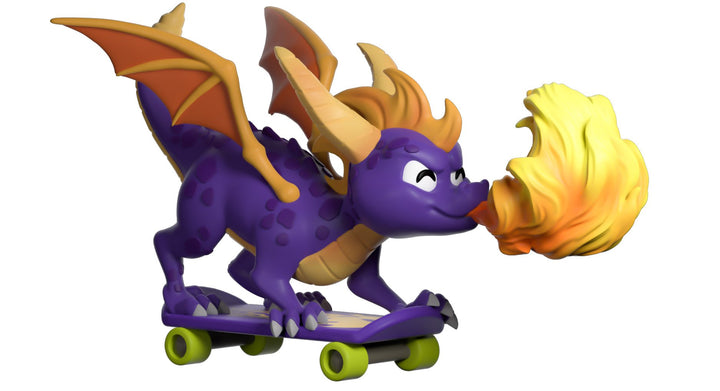The original roast master is back! Youtooz collaborates with Spyro for the release of his designer collectible inspired by the Spyro™ Reignited Trilogy. Sliding by on a purple skateboard at 5 inches in length, this figure detailed the iconic scorching flamethrower shooting out of Spyro’s mouth. The skateboard contains a print of a flame and green wheels. The flame being shot by Spyro is airbrushed using yellow and orange colors. Spyro’s horns and wings are carefully sculpted to capture his character. His purple body features raised scales. The double-walled window box is illustrated using fiery flames on a backdrop of his classic purple color. This collectible ships in a matte, embossed, protective outer sleeve.