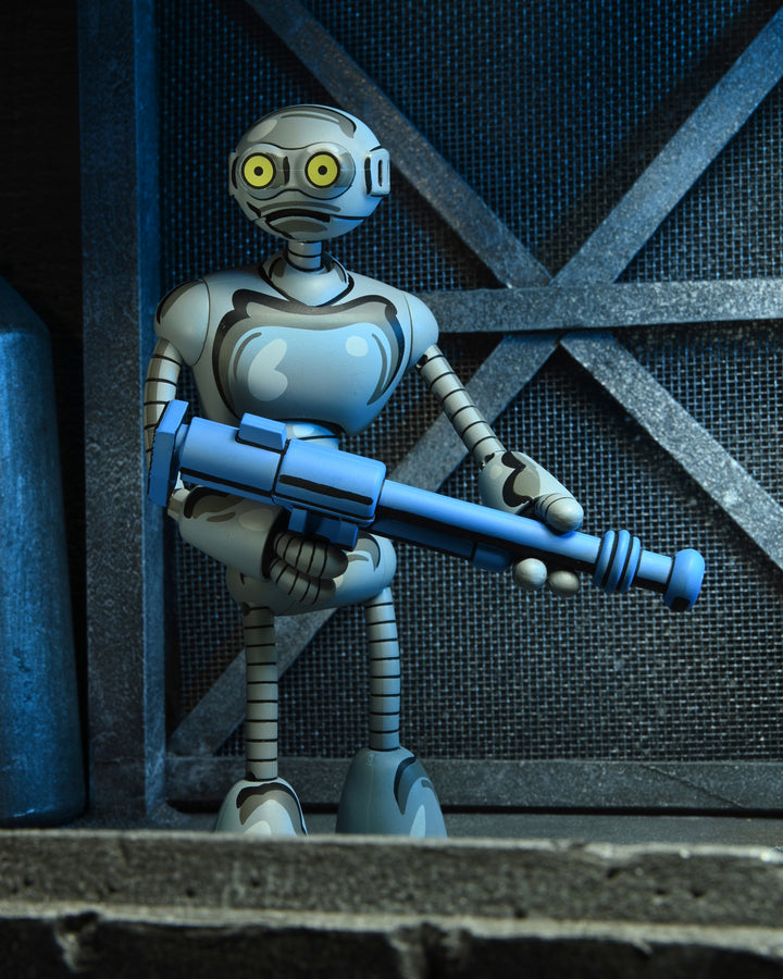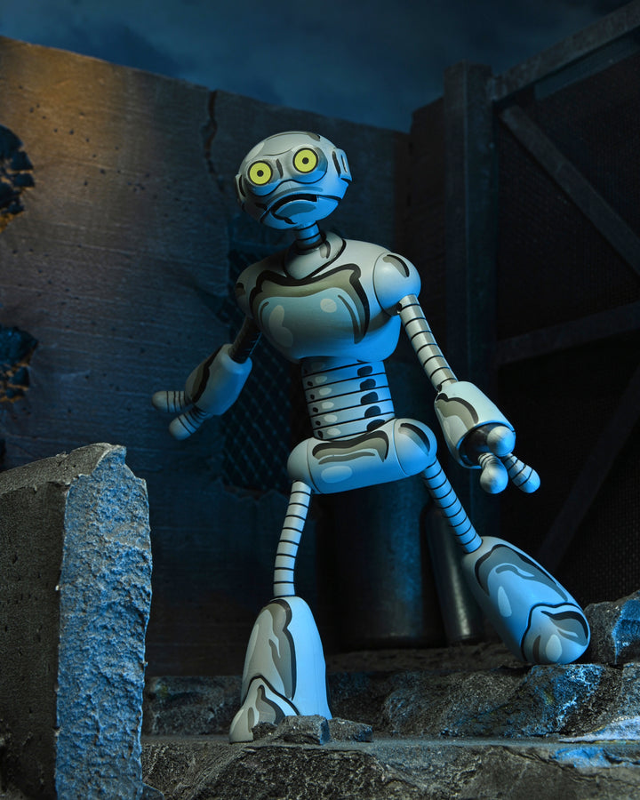 This fugitive android was once the brilliant Professor Honeycutt from the planet D’Hoonib… until his mind was trapped inside his android creation in a freak accident. Now on the run from the government of his home world, this hero in a full shell (of metal) has become the best ally a Turtle could have. The Fugitoid action figure includes interchangeable hands, assorted weapons that can also be used by your NECA Turtles figures, and more.
