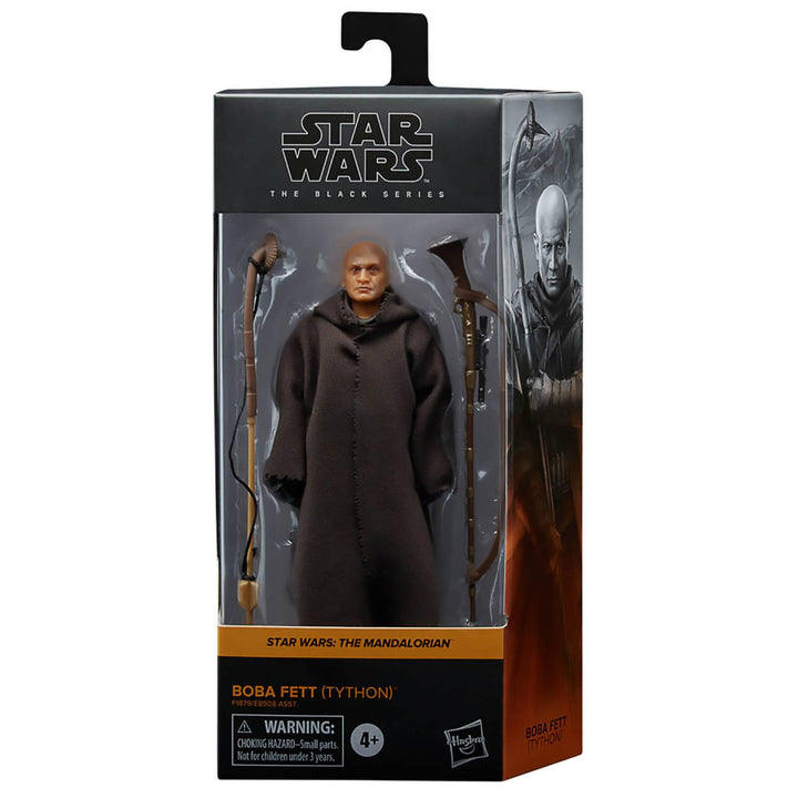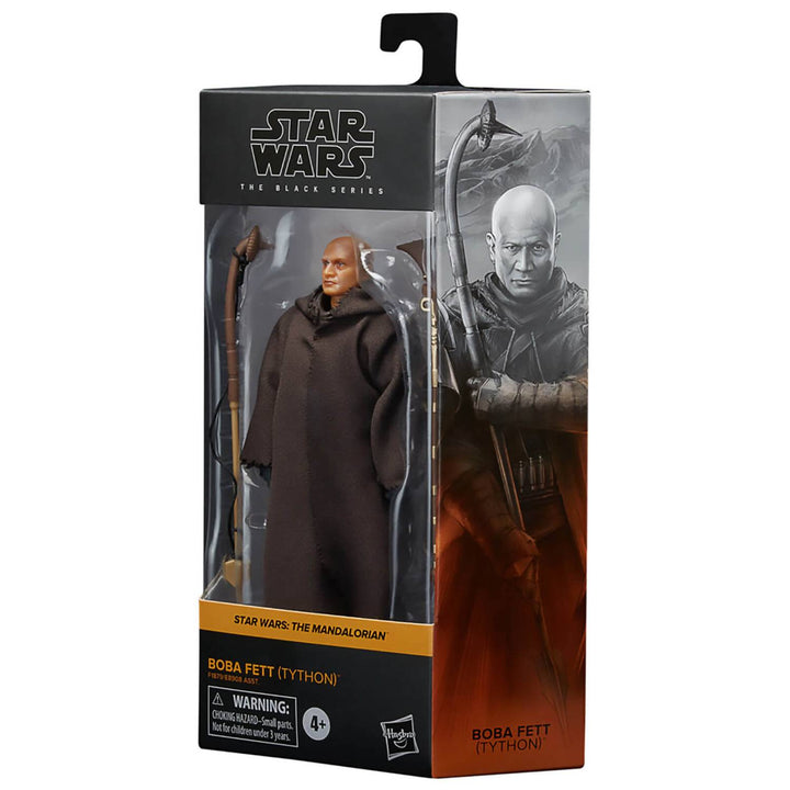 The 6-inch-scale Black Series figure is detailed to look like the Boba Fett (Tython) character from Star Wars: The Mandalorian, featuring premium detail and multiple points of articulation