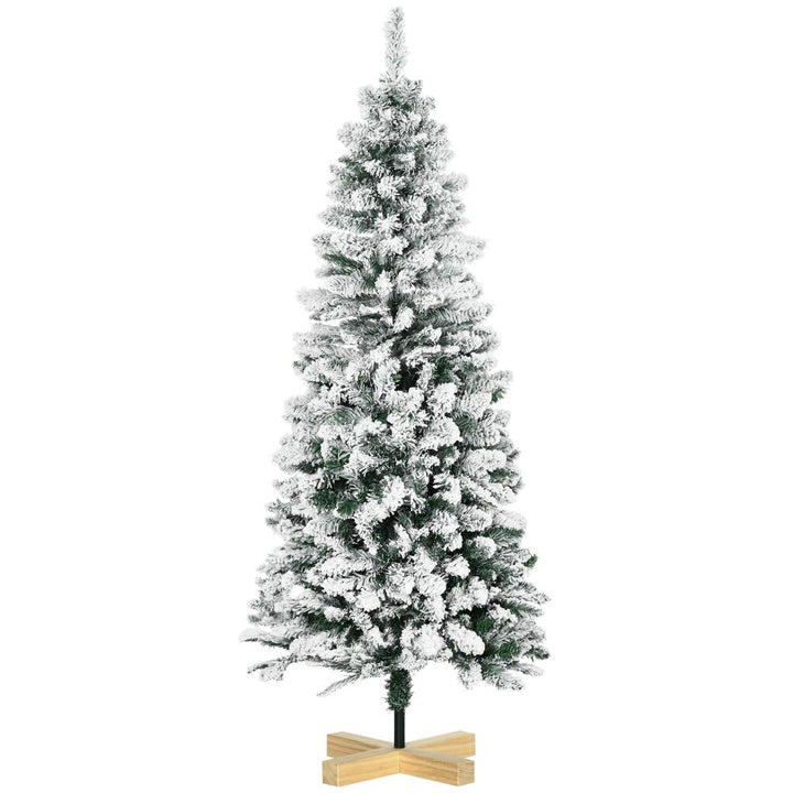 5ft Snow Flocked Artificial Christmas Tree (Pencil Shape, Green)
