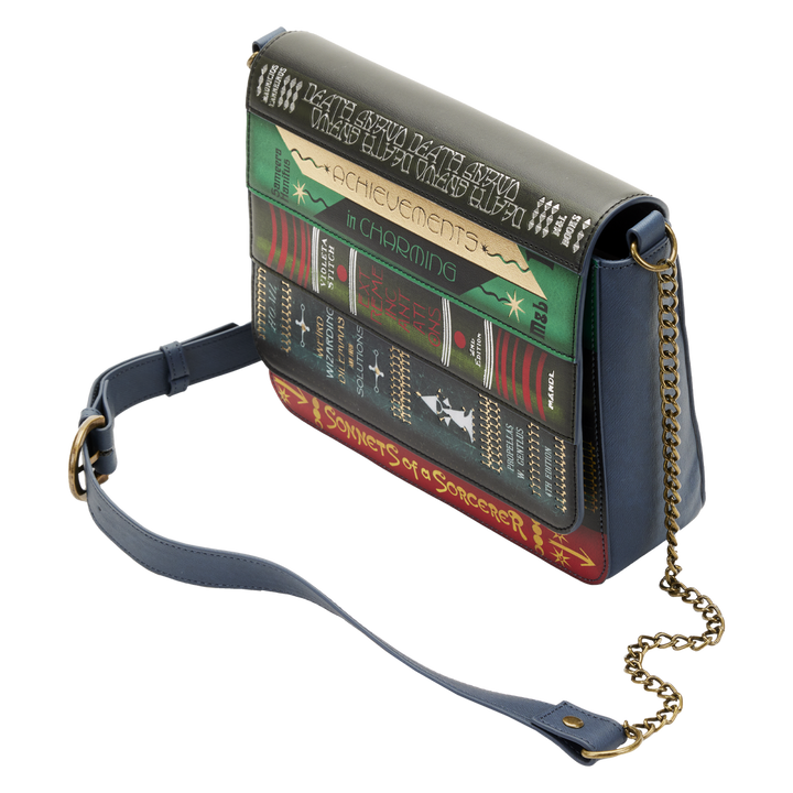 Class is in session! Brush up on your studies of wizardry with the Loungefly Magical Books Chain Strap Crossbody Bag.