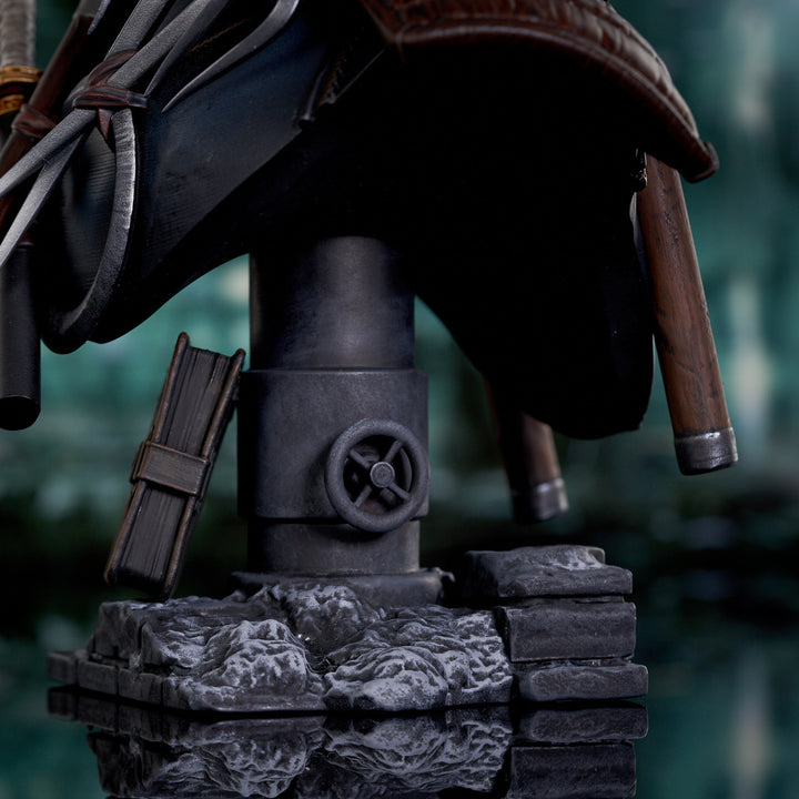 As seen in the hit TMNT comic book The Last Ronin, the last surviving Ninja Turtle is now a 10 inches tall, 1/2 scale bust, atop a detailed sewer pipe base. With his brothers' weapons on his back, and a pair of nunchucks draped over his shoulders, this bust of the Last Ronin is limited to only 1000 pieces, and comes packaged with a numbered certificate of authenticity in a full-color box. Designed by Joe Allard, sculpted by Kinetic Underground!
