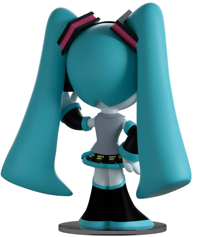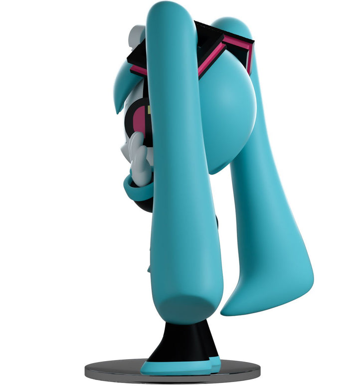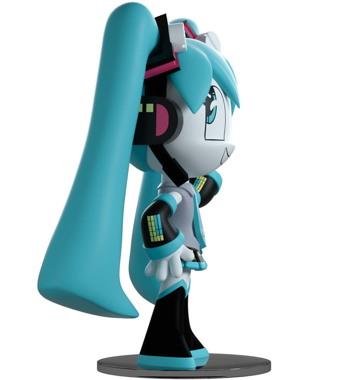 Ready to protect earth, or belt out the most amazing melody, Jenny Miku rocket boosts her way into Youtooz! The first ever Hatsune Miku x My Life as a Teenage Robot collaboration has arrived and stands at 4.5 inches tall with a robotic hand raised in a wave while the other rests on her hip, her large blue eyes simply glisten above the small semicircle smile on her round white face. Her long blue pigtails flick in at a point at their ends and are held in place with square pink and black accessories that rest over her headset, its mic extending over her face in preparation for her next song! Dressed to take center stage, she wears a grey vest with a black skirt, arm sleeves, and boots, their blue trim matching the angular tie on her chest. The exterior of her packaging is a pink and blue with polka dots framing Jenny Miku’s silhouette that continue through to the interior in a beautiful gradient to surround her figure completely. The protective sleeve continues this theme and adds wavy blue and pink bars with sparkling diamonds. This collectible ships in a matte, embossed, protective outer sleeve and a custom sized plastic protector for maximum protection during shipping.