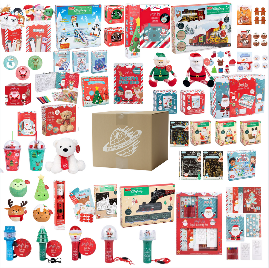 Discover the magic of Christmas with our Christmas Mystery Box! You’ll receive 5 surprise festive toys and activities chosen from a selection of 15+ Christmas favourites, including stockings, squishies, decorations, games, and more. No duplicates – every box is unique! Perfect as stocking fillers, party surprises, or family fun.