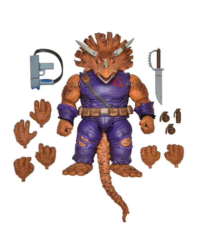 Based on the original Eastman & Laird Teenage Mutant Ninja Turtles comic books from Mirage Studios! It’s terror in the sewers for anyone unlucky enough to come across Zog, a Triceraton soldier who fled to the tunnels after escaping the TCRI research building. The deluxe figure is almost 8" tall, and includes extra hands, blaster, grenades, and machete! Comes in all new special comic-book themed window box packaging illustrated by Kevin Eastman.