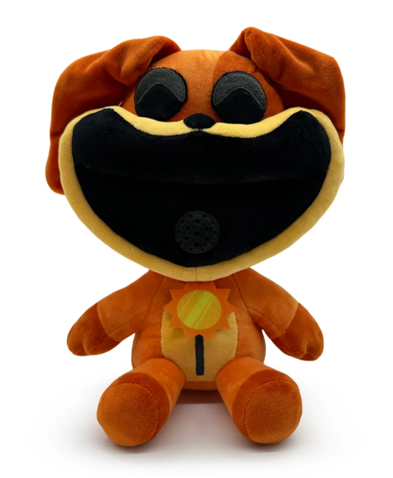DogDay may be the last of the Smiling Critters, but maybe you can keep him company with his Youtooz debut! Sitting at 9 inches tall with their huge open mouth stretching into an unnerving wide smile that reveals a small air tube, dark round eyes adorn their two tone brown face underneath long floppy ears. With an orange and yellow sun on their chest and long arms and legs stretch out from a rounded body, their hands and feet are a darker brown and a pointed tail extends from their back. This plush is packed to the seams with 100% PP cotton and is made of the softest minky material, absolutely perfect for cuddling and cuddling and cuddling!
