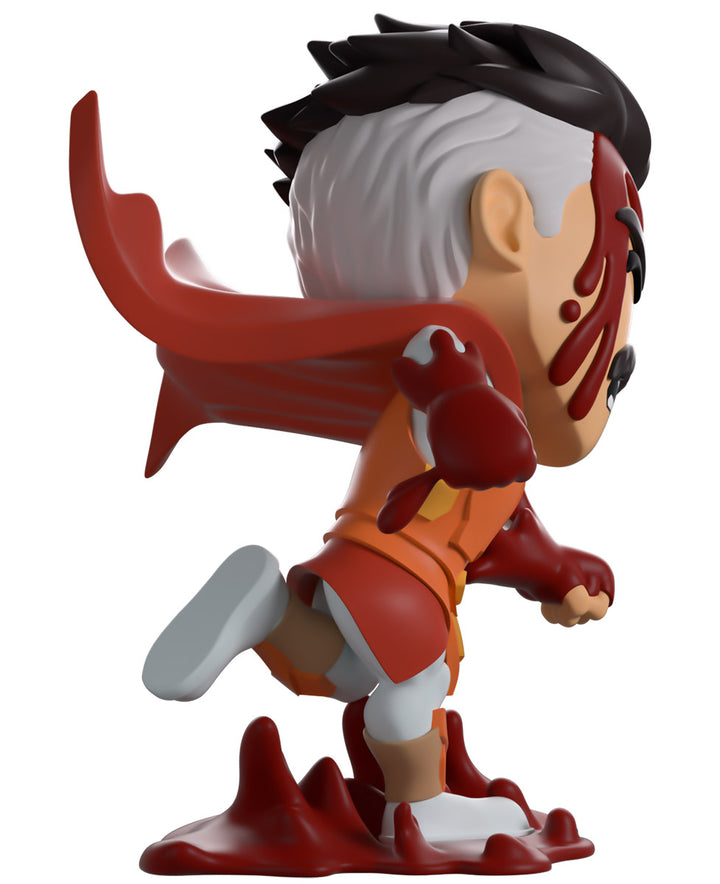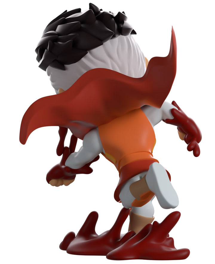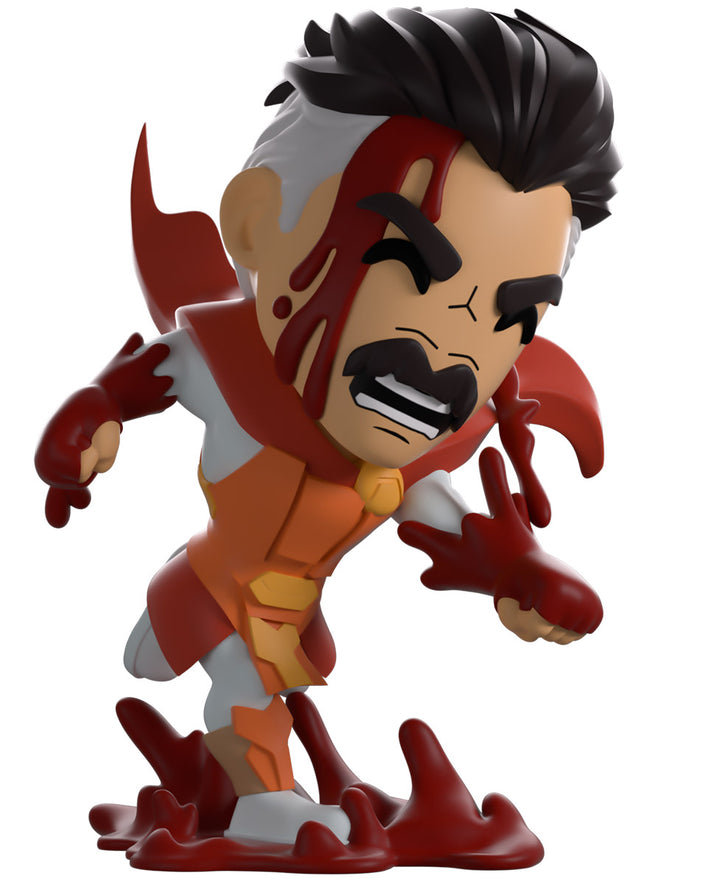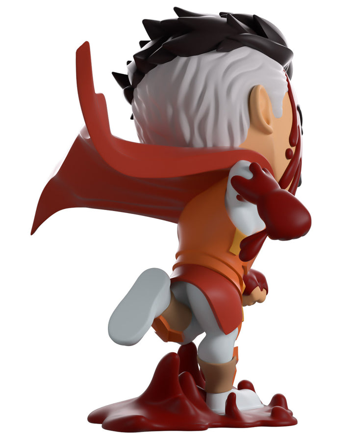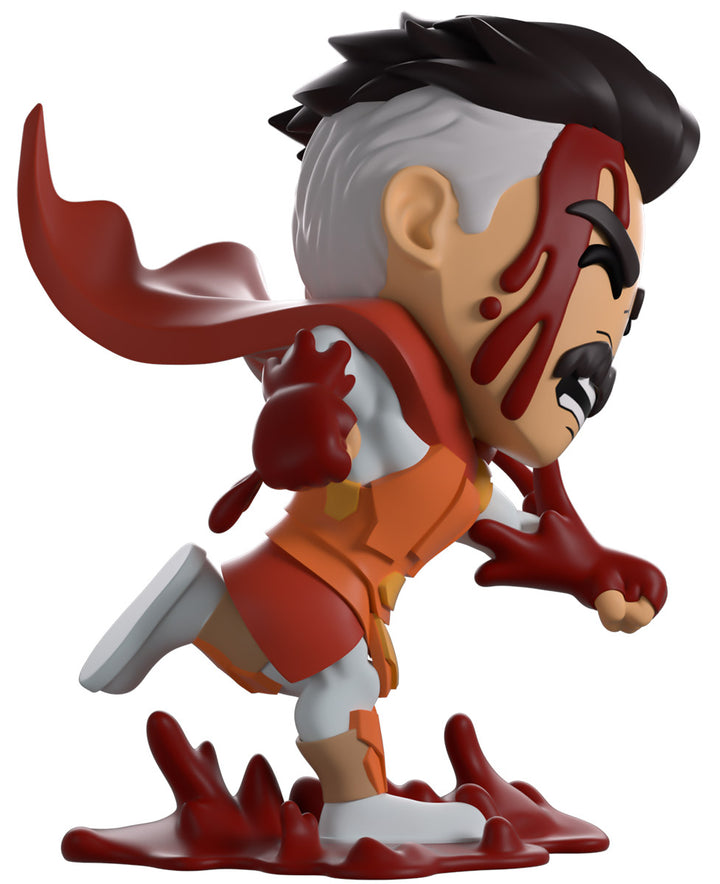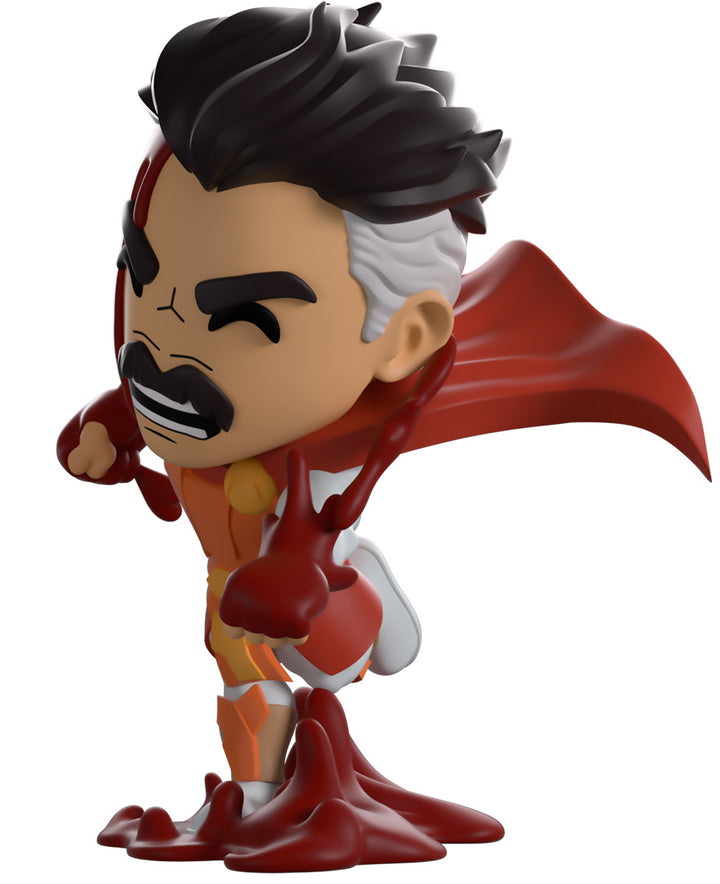 Omni-Man has returned to Youtooz to... finish things, and you know what? I think we might be done for! Launching forward at 4.4 inches tall with blood-drenched fists and his face curling into a snarl and letting out a raging yell, long streaks of blood stream down his face and spew out of his ears as black hair sweeps back over a grey undercut. With a long red cloak floating behind him, he wears orange and yellow armour over a skin-tight white suit as his boots splash through the puddle of vibrant blood at his feet. The exterior of his packaging sees him launching someone into the air with a violent punch. The interior shows a pristine city skyline under a bright blue sky which stretches onto the protective sleeve as his figures can be seen through the large clear window at its front. This collectible ships in a matte, embossed, protective outer sleeve and a custom-sized plastic protector for maximum protection during shipping.