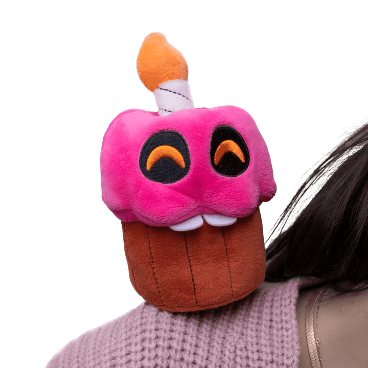 The Cupcake Shoulder Rider lands at Youtooz to make you the most stylish chica around! Plopped down at 6 inches tall it stares at you with its piercing eyes that glow a bright orange from their dark housing and perfectly contrast their frosted pink head! Topped with a single candle that stands tall and burns brightly, their buck teeth happily poke over a stripped brown casing. Each plushie is a minky material packed to the seams with the most huggable squishy 100% PP cotton and comes equipped with a magnetic disc to let it perch firmly atop your shoulder as the best accessory and a true testament to your love of the fandom!
