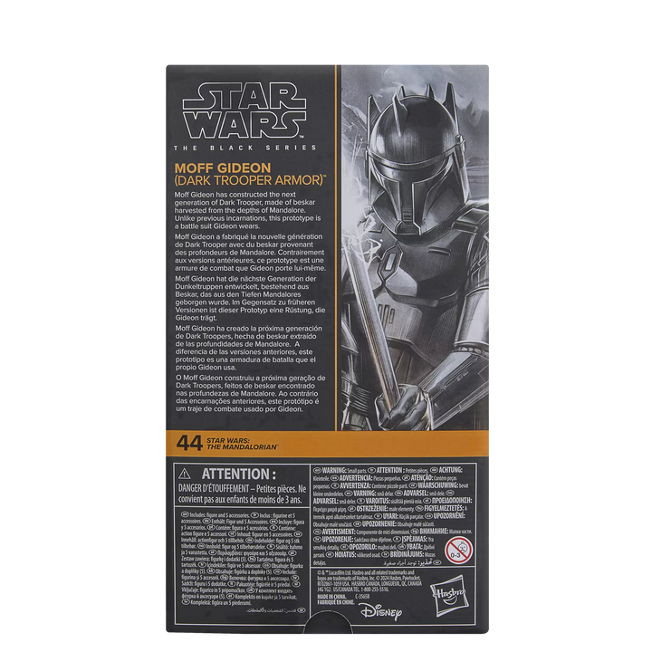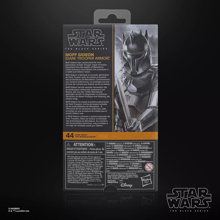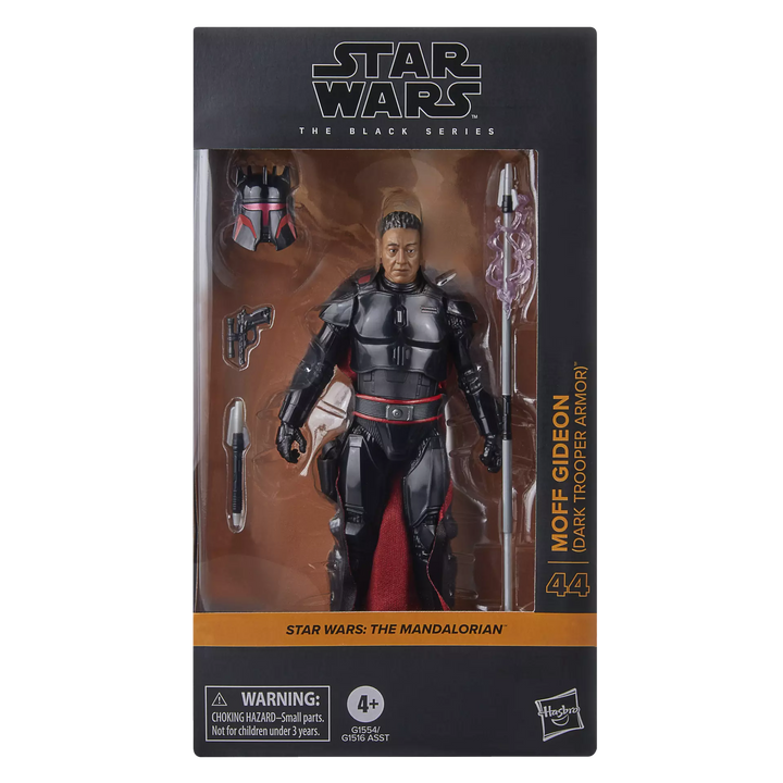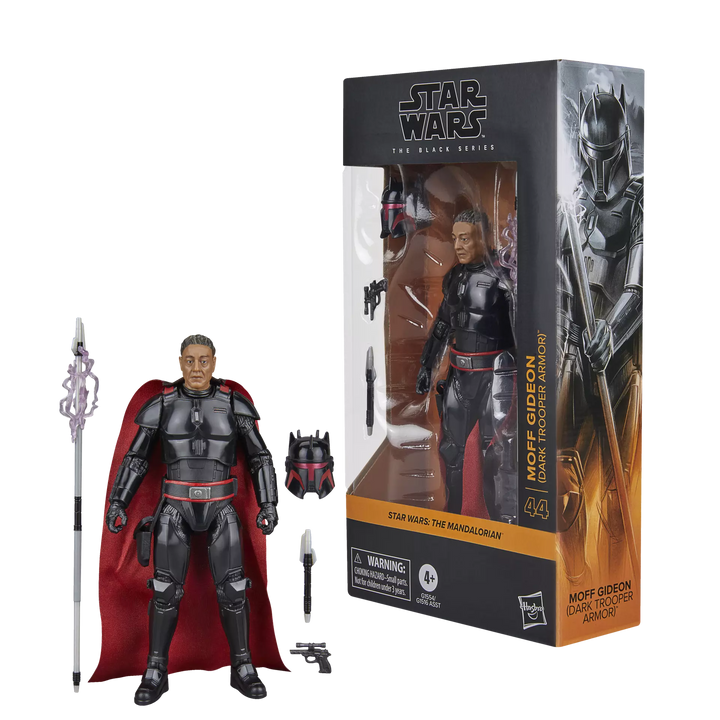 Star Wars The Black Series includes 15 cm action figures, vehicles, and roleplay items from the 40-plus-year legacy of the Star Wars Galaxy, letting fans create galactic scenes with a faithfulness to Star Wars comic books, movies, and series. This Star Wars action figure is detailed to look like Moff Gideon (Dark Trooper Armor) from Star Wars: The Mandalorian. With exquisite features and decoration, The Black Series embodies the quality and realism that Star Wars devotees love. May the Force be with you! (Additional products each sold separately. Subject to availability.)