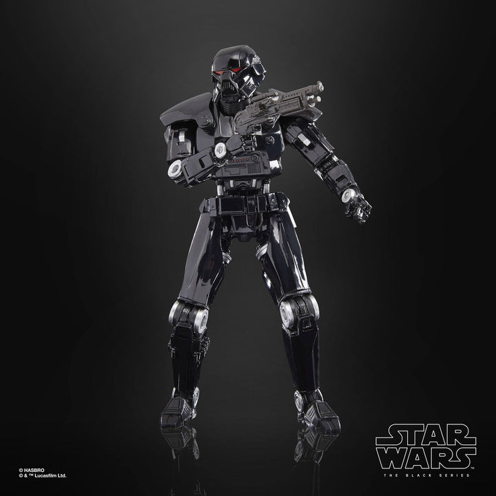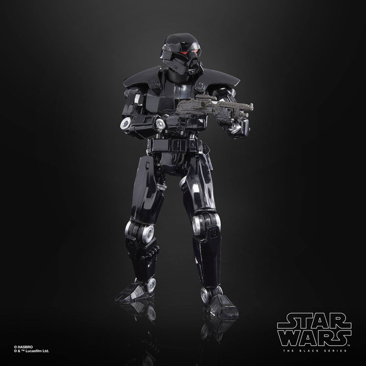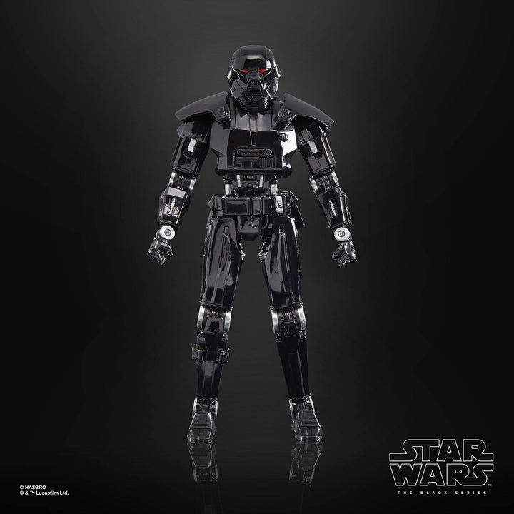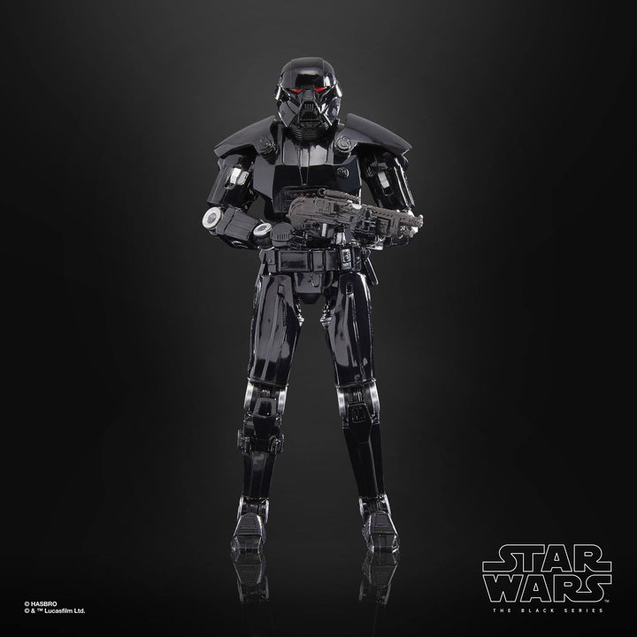 The 6-inch-scale Black Series figure is detailed to look like the Dark Trooper character from Star Wars: The Mandalorian, featuring premium detail and multiple points of articulation.