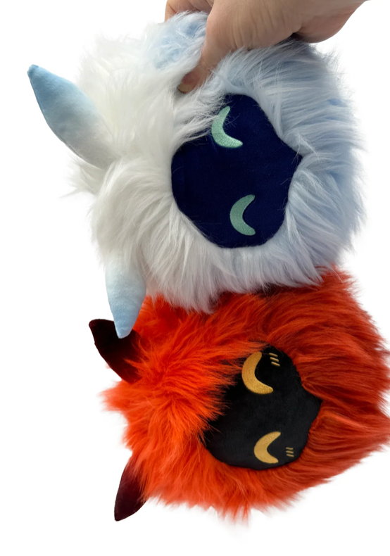 Oooohhh buurrrnnnn! We have teamed up with Genshin Impact to bring their Abyss Mages to life! This 6-inch plush stickie is much softer than it is sizzling! This round body is covered in a red-to-orange ombre-colored long pile minky material and is complete with a black Abyss Mage mask, made of minky material, in the center of its face, with some yellow blush marks on its cheeks. To top it off there are two cute ears that pop out from the top of its head. This stickie is stuffed with ultra-soft 100% PP cotton and comes with 4 sewn-in magnets so you can stick them together or onto any magnetic surface.