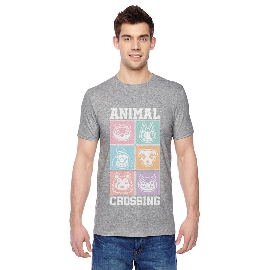 Officially Licensed Nintendo merchandise. This T-shirt features an iconic design from the game Animal Crossing, printed on a 97% cotton / 3% polyester heather grey unisex T-shirt. 30% degrees wash