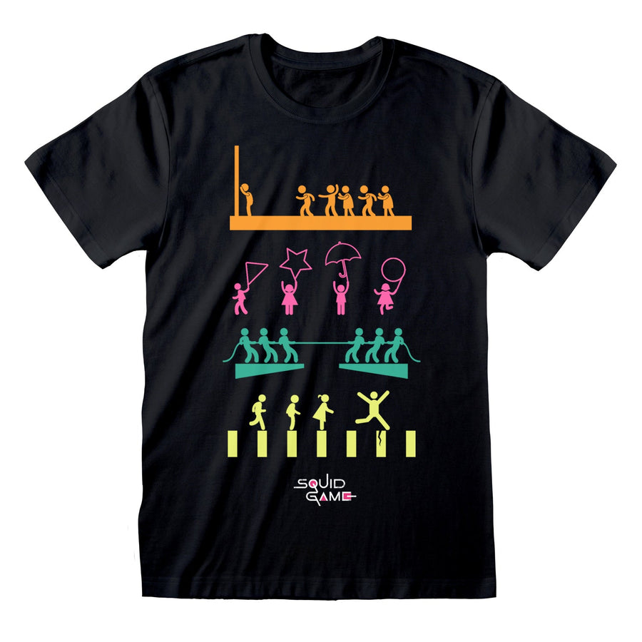 Officially Licensed Squid Game merchandise. This T-shirt features an iconic design from the TV series, printed on a 100% cotton black unisex T-shirt. 30% degrees wash