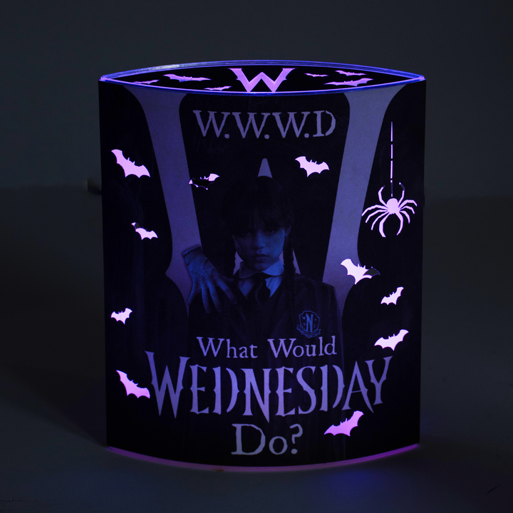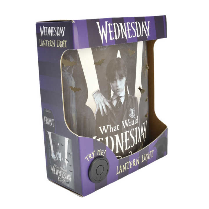 Illuminate your space with a touch of gothic charm using the Wednesday Lantern Light. This enchanting lantern features a mesmerising colour-changing light that adds a magical, eerie atmosphere to any setting.
