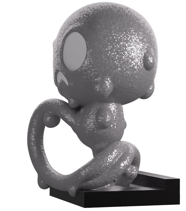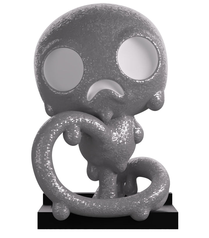 Dogma has emerged from the fuzzy static of an old television to arrive at Youtooz! With a lifeless face and sunken eyes staring out from above a distraught frown, their glittery body elicites the white noise of an old TV as their oozing body floats at 3.5 inches tall with a long umbilical cord wrapping around it. The exterior of their packaging sees a spiral of static curling out of a tv screen, this continues to the interior filling the packaging completely. The protective sleeve then looks into a dungeon room as their figure can be seen through the large clear window at the packaging’s front. This collectible ships in a matte, embossed, protective outer sleeve and a custom sized plastic protector for maximum protection during shipping.