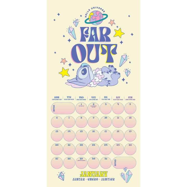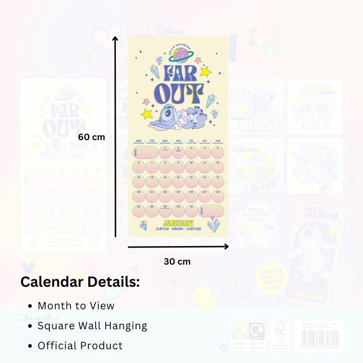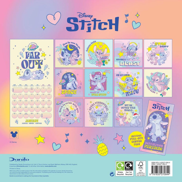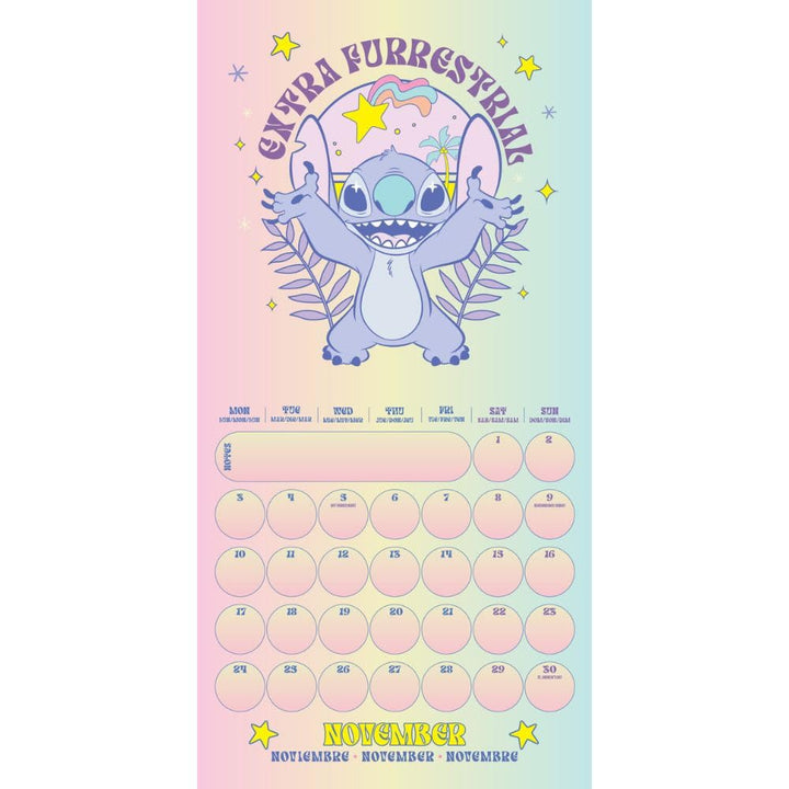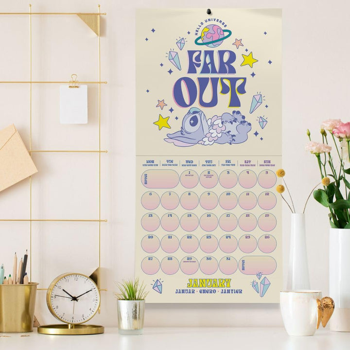 Vibrant and colourful calendar featuring images of Stitch and Angel