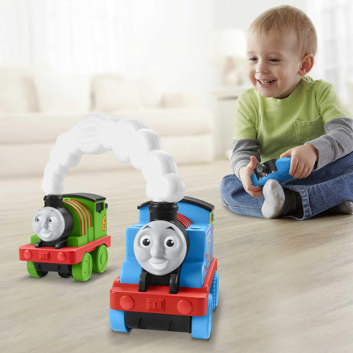 These large remote-controlled Thomas the Tank Engine and Percy models are linked by a steam cloud handle. Both of these exciting fan favourites feature realistic sounds and character phrases from the Thomas & Friends TV show!