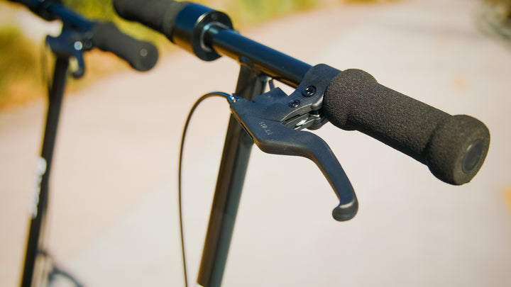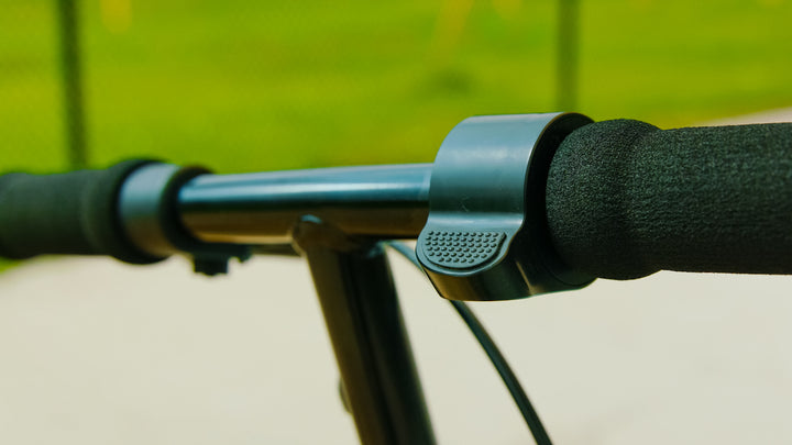 Designed for smooth and comfortable rides, it features an 8" pneumatic front tire that absorbs bumps on uneven terrain, paired with an airless, flat-free rear tire for durability and low maintenance. The scooter’s all-steel deck and frame provide a solid foundation, while rear-wheel drive improves traction and steering control.