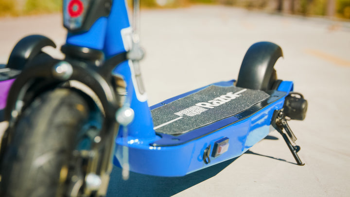 The Razor PowerCore S85 12 Volt Scooter Blue is a perfect blend of strength and style, powered by Razor’s innovative high-torque, maintenance-free hub motor technology. It reaches speeds up to 10 mph (16 km/h) and offers up to 35 minutes of uninterrupted ride time on a single charge thanks to its rechargeable 12V battery.