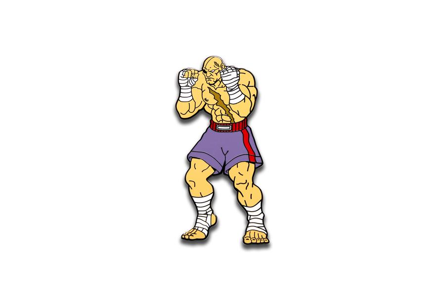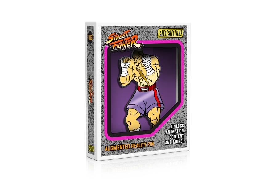 A new challenger arrived! Scan your Sagat pin with our free Pinfinity app to see him perform a special move along with stage music. Move the pin away from the viewfinder or device away from the pin to have him POP OUT and place him next to your friends for some extra awesomeness. Check out the rest of our Street Fighter collection for more Pinfinity augmented reality pins.