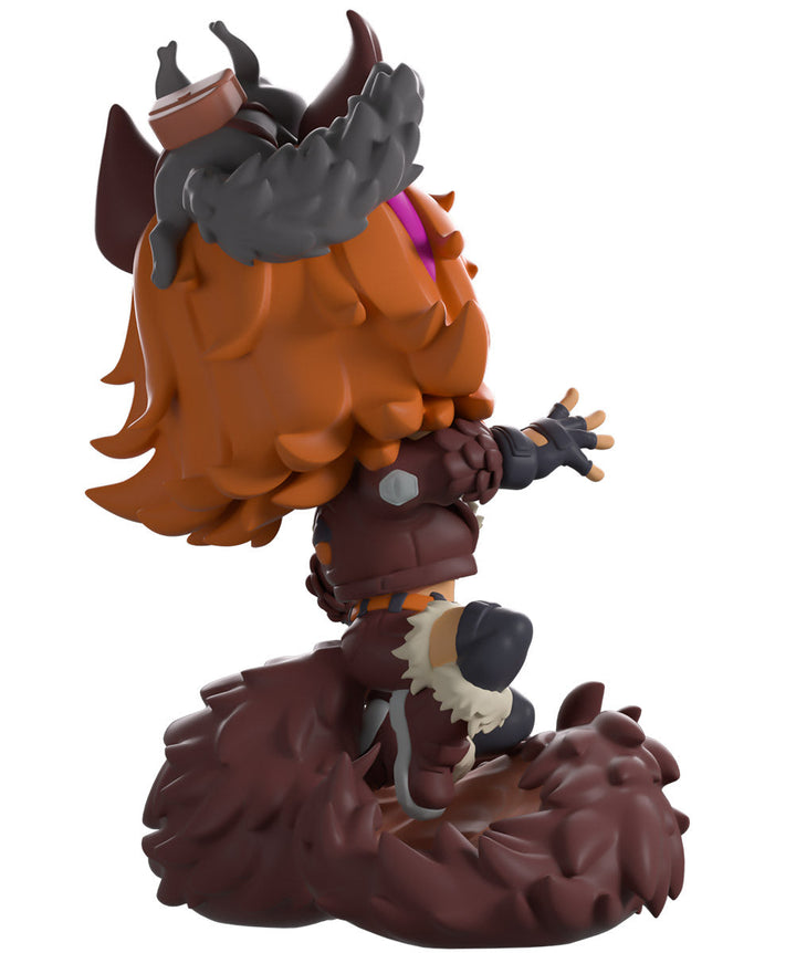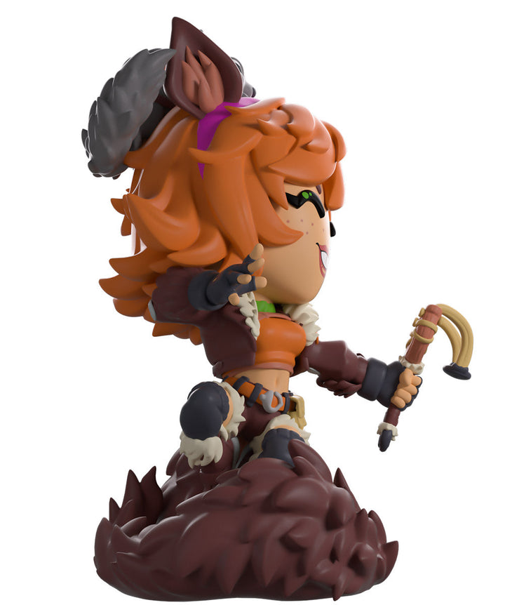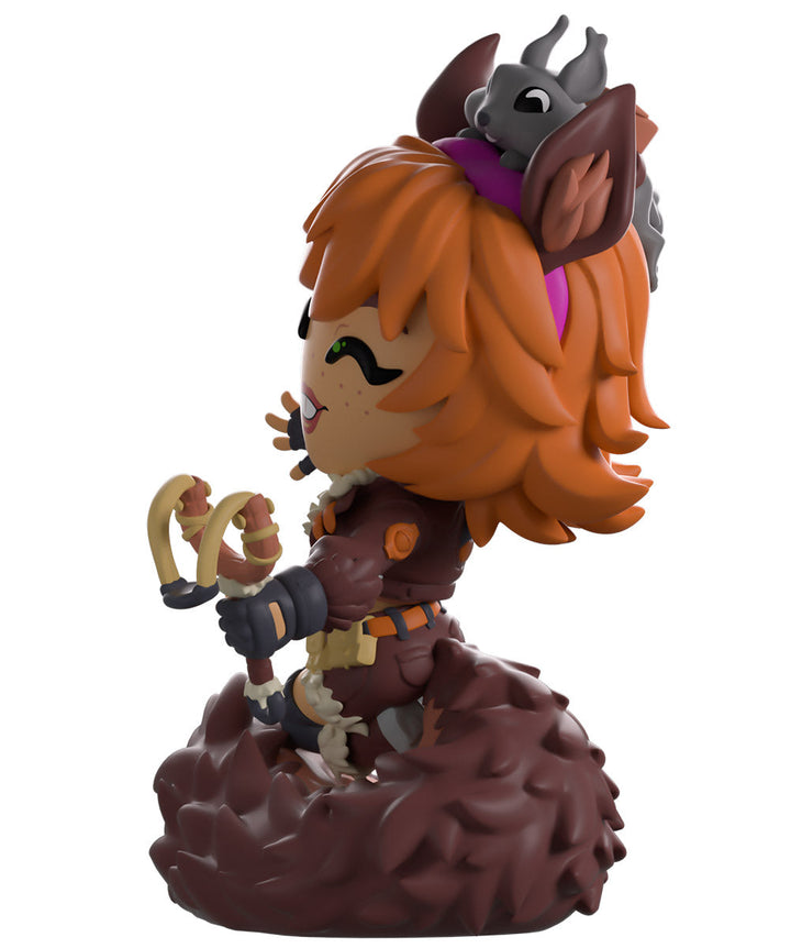 It’s time to eat nuts and kick butts with Squirrel Girl’s Youtooz debut! At 5.1 inches tall and raised up on the fluffy brown tail that curls around her feet, she’s just unleashed a deadly acorn from the slingshot in her left hand as the adorable Tippy-Toe rests atop her orange hair between pointed brown ears. With a bucktooth smile shining from her freckled face, she wears a brown leather jacket with a fur trim over her orange tank top along with matching short shorts, as a series of pouches hang from the belt around her waist. The exterior of her packaging features Squirrel Girl standing in front of her jagged amber silhouette. While the interior is a bright yellow with grey and white lines streaking across it, these then make their way onto the cool grey protective sleeve, where her figure can be seen through the large clear window at its front. This collectible ships in a matte, embossed, protective outer sleeve and a custom-sized plastic protector for maximum protection during shipping.