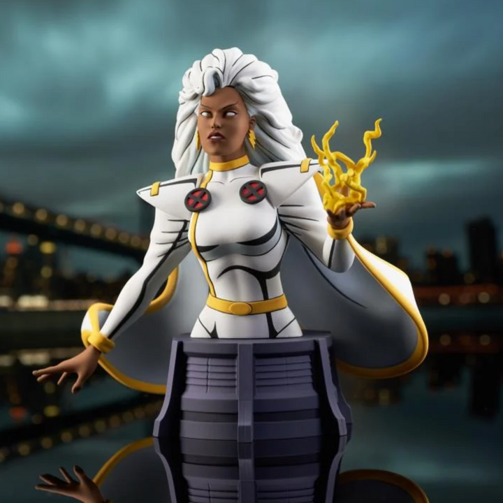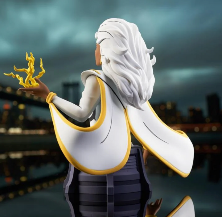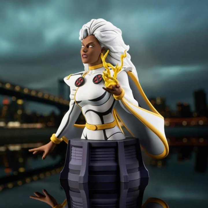By the Goddess! The hit X-Men: The Animated Series line of mini-busts continues with the highly requested Storm! The weather-manipulating mutant wears her trademark white suit and holds a ball of lightning in her hand in this 1/7 scale, approximately 6-inch mini-bust. Limited to only 3000 pieces, it features detailed sculpting and cartoon-accurate paint applications, and comes packaged in a full-color box with a numbered certificate of authenticity. Designed by Barry Bradfield, sculpted by Paul Harding!