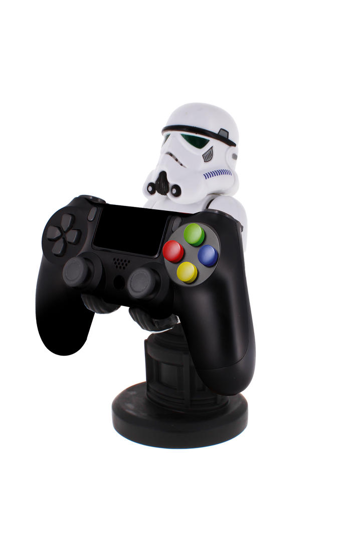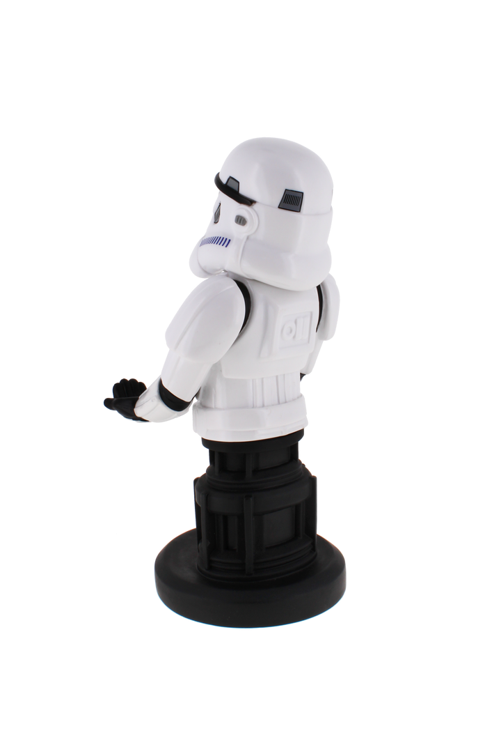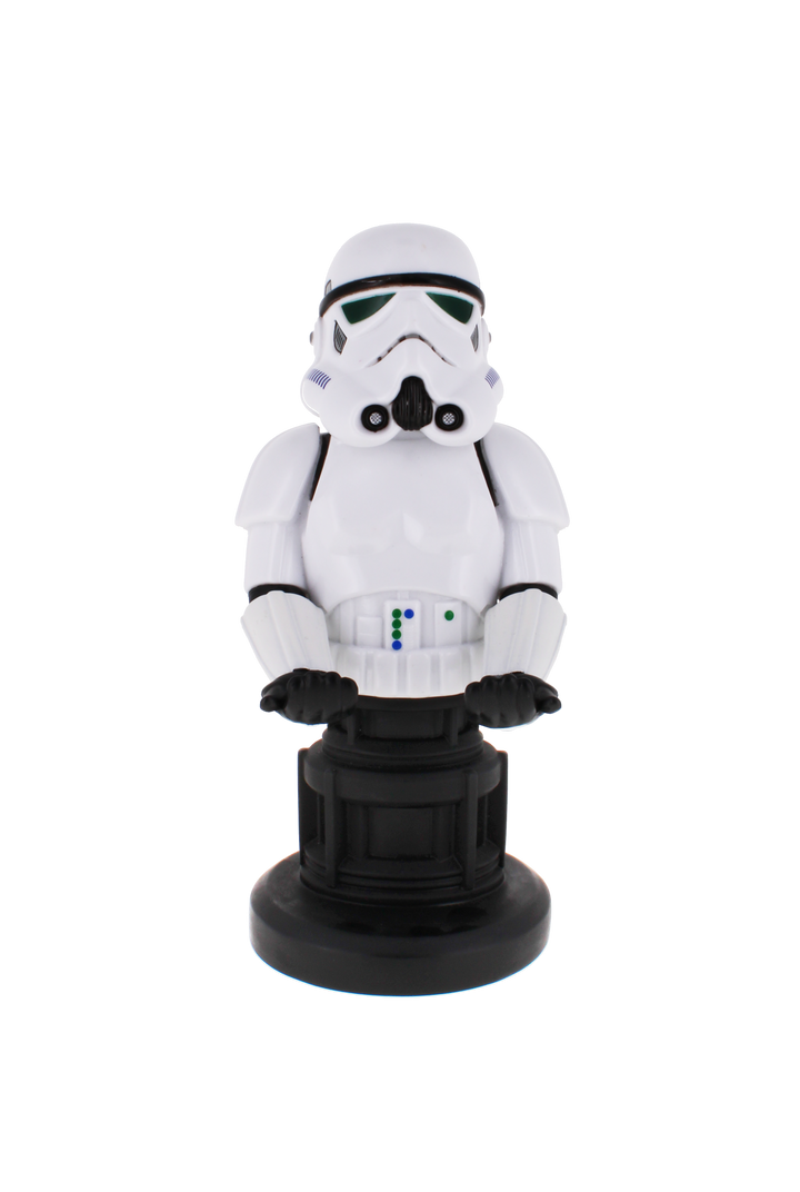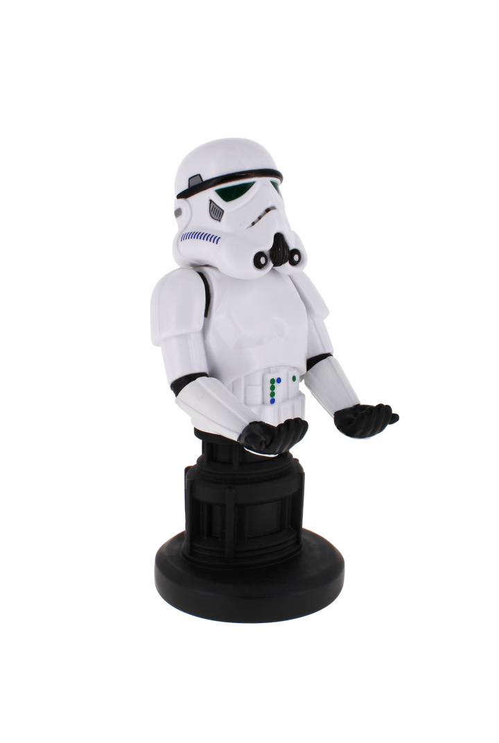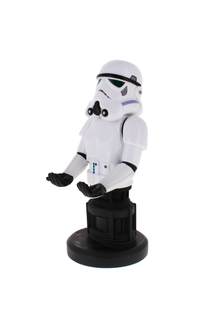 Storming in from the Galactic Empire is the elite space marine: Stormtrooper TM. Direct from serving the frontline in its signature white armour as seen throughout the legendary Star Wars. Under the direction and leadership of Emperor Palpatine TM and commanders Darth Vader TM and Grand Moff Tarkin TM, Stormtrooper TM joins part of our immensely popular Cable Guys range and is stationed on a plinth ready to hold most types of gaming controller, smart phone device, or anything else you can fit onto his hands.