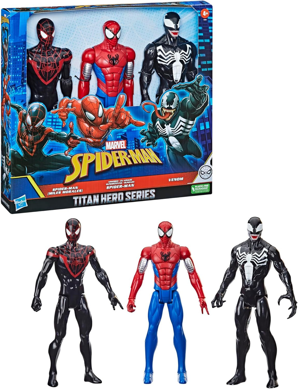 Hasbro Marvel Comic Titan Hero Series Spider-Man, Miles Morales and Venom 12" Scale Action Figure Set (Set of 3)