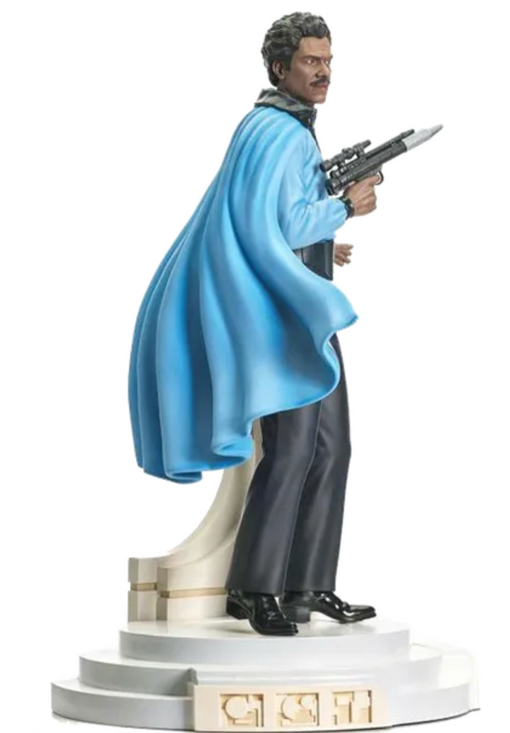 The smoothest of space station supervisors is now one very cool 1/6 scale statue! Part of the Star Wars Milestones line, Lando strikes a pose with cape flaring and blaster in hand in this approximately 13" tall sculpture. This edition is limited to only 1500 pieces and comes packaged with a numbered certificate of authenticity in a full color box. Designed by Joe Allard. Sculpted by Paul Harding.