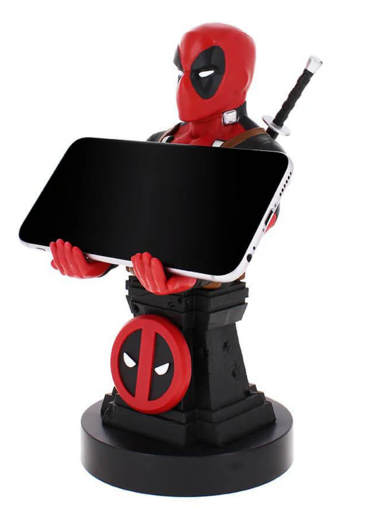 Joining our hugely popular Cable Guys range is the unhinged and cheeky Marvel assassin Deadpool. An expert swordsman with superhuman healing power, our Deadpool Cable Guy is stationed by a plinth and will hold and heal most types of gaming controller, smart phone device, or anything else you can fit into his hands. Just no clowning around, OK?