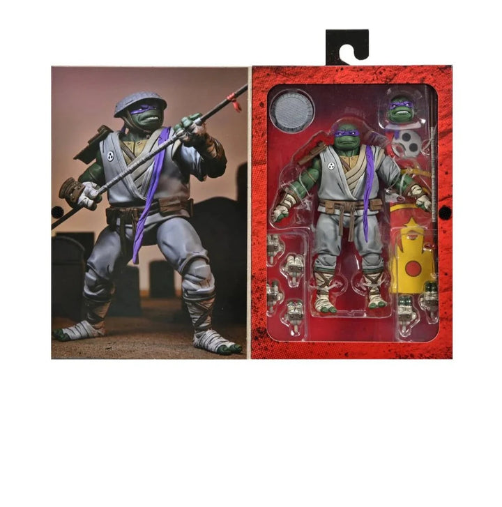 From the Teenage Mutant Ninja Turtles comic book series, The Last Ronin! In a future NYC far different than the one we know today, a lone surviving Turtle goes on a seemingly hopeless mission to obtain justice for his fallen family and friends. Based on issue #4 of the comic, this Donatello figure stands in 7-inch scale with over 30 points of articulation and includes extra hands, head, Hamato Clan shashimono, and even a removable hat!