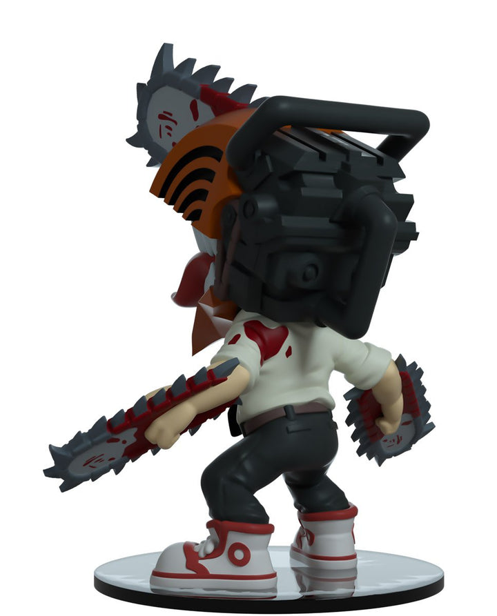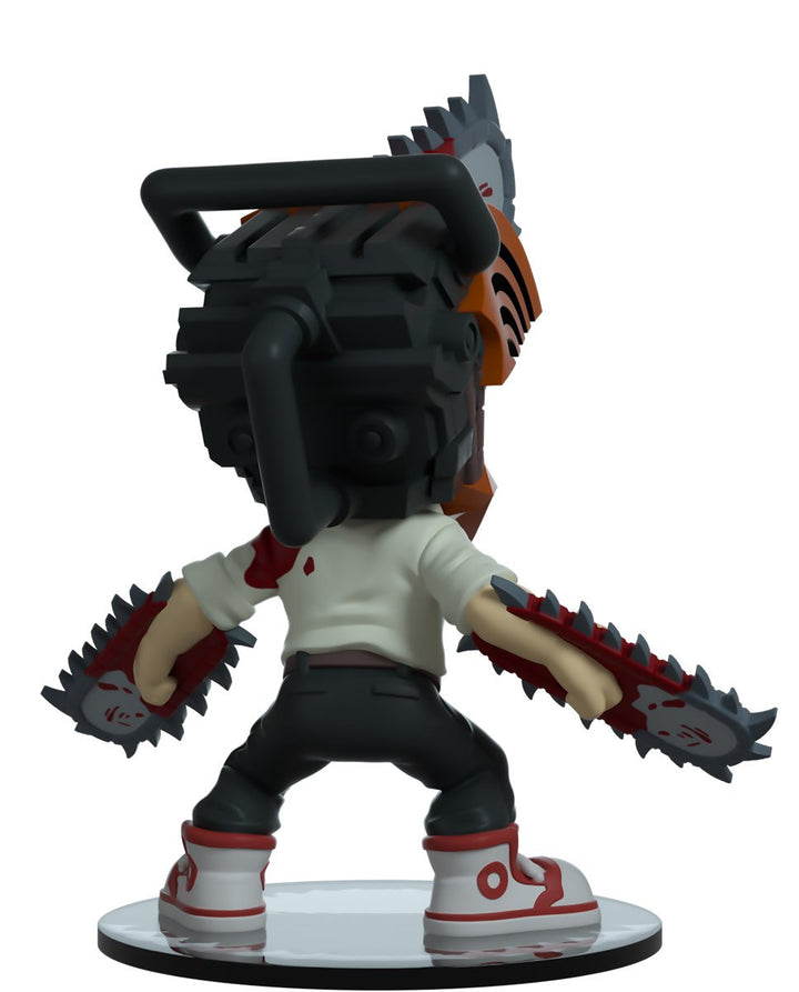 Denji has ripped his pull cord to send chainsaws flying from his limbs and head to land at Youtooz for his latest Devil prey! Standing poised and ready to battle at 4.6 inches tall, nothing will get in the way of his dream, to tou... I mean kis… TO TAKE DOWN THE GUN DEVIL! Two bloody Chainsaws explode from his forearms while the third whirls from his metallic orange and black head, its large pointed teeth splitting only to let out a wicked curling red tongue. Dressed in the standard public security uniform of a white button up shirt with black tie and pants, his white and red kicks add a little flair of Denji to the look. The exterior of his packaging is a vibrant orange stamped with kanji and splattered in a toxic green spray which also covers the bright yellow interior. As the protective sleeve see’s Denji in full Chainsaw Devil mode with blades out ready to take down a devil horde with the orange and green splatter bleeding through. This collectible ships in a matte, embossed, protective outer sleeve and a custom sized plastic protector for maximum protection during shipping.