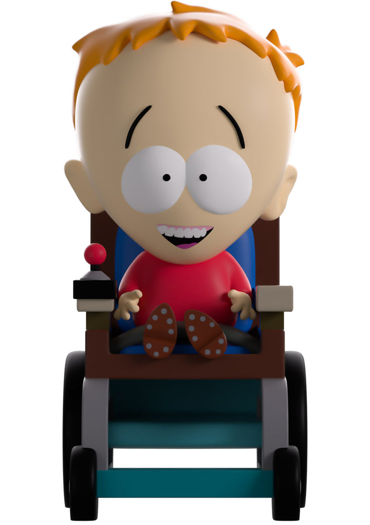 Timmy’s screeched his way into Youtooz in impeccable style for his debut! Always cheerful and absolutely beaming with happiness as he sits strapped into the seat of his electric wheelchair at 5.3 inches tall, his open smile reveals a row of teeth while short orange hair covers the top of his head and he wears a bright red shirt as his brown shoes kick forward. The exterior of his packaging sees him tucked tightly into bed snoozing away.