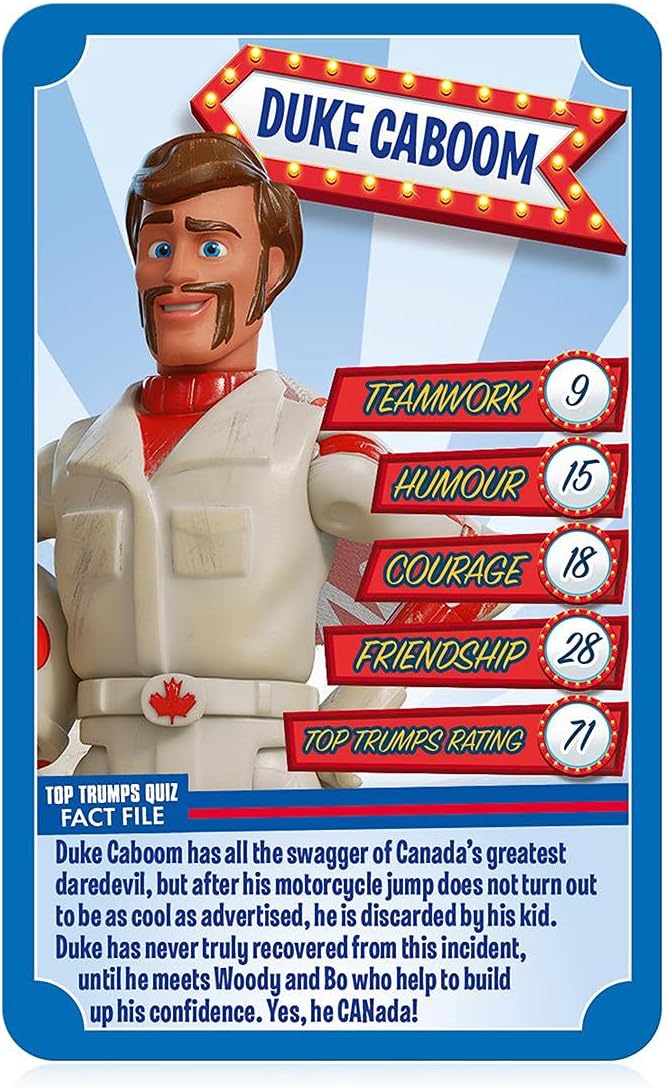 Join Woody, Buzz and the rest of the gang in this entertaining, educational card game packed full of brand new characters, in this edition of Toy Story 4 Top Trumps. Discover who Benson really is and who he helps. Find out if Forky has a higher Friendship rating than Mr Potato Head, or who has the best Courage score amongst them all! You can even compare Teamwork, Humour and find out who will be the Top Trump!