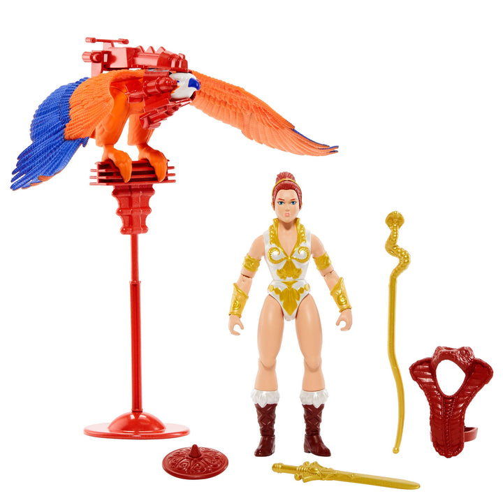From Mattel's "Masters of the Universe Origins" series come these highly articulated and fully posable action figures. Teela stands approx. 14 cm tall and comes with Zoar and accessories in a window box packaging.