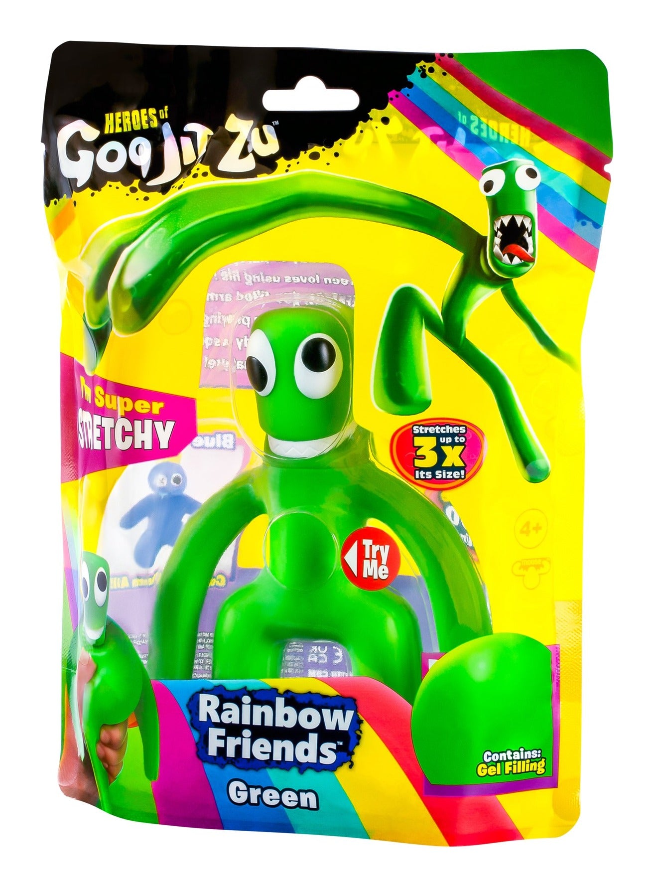 Rainbow Friends, the multiplayer, kid-friendly horror story experience have now joined with the Heroes of Goo Jit Zu to become super squishy, stretchy action figure toys! Green is super stretchy and loves using his long stretchy, goo-filled arms to find his friends when playing hide and seek. Give his body a squeeze to reveal his gooey nature. Boys and girls can stretch them up to three times their size. Best thing is they will always come back to their original shape! Heroes of Goo Jit Zu Rainbow Friends are a gooey way for kids to play with no mess. Fans can collect both Blue and Green 4.2-Inch character figures.