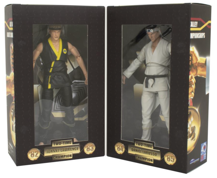 A Diamond Select Toys release! Revisit the fight that started it all, with this exclusive two-pack featuring Johnny Lawrence and Daniel LaRusso! The two karate students-turned-teachers are wearing their classic karate gi's, and each 7-inch figure features over 16 points of articulation. The pair come packaged in a folding, full-color window box. Sculpted by Rocco Tartamella and Chris Dahlberg, packaging design by Jack Tsai! Limited to 4000 pieces