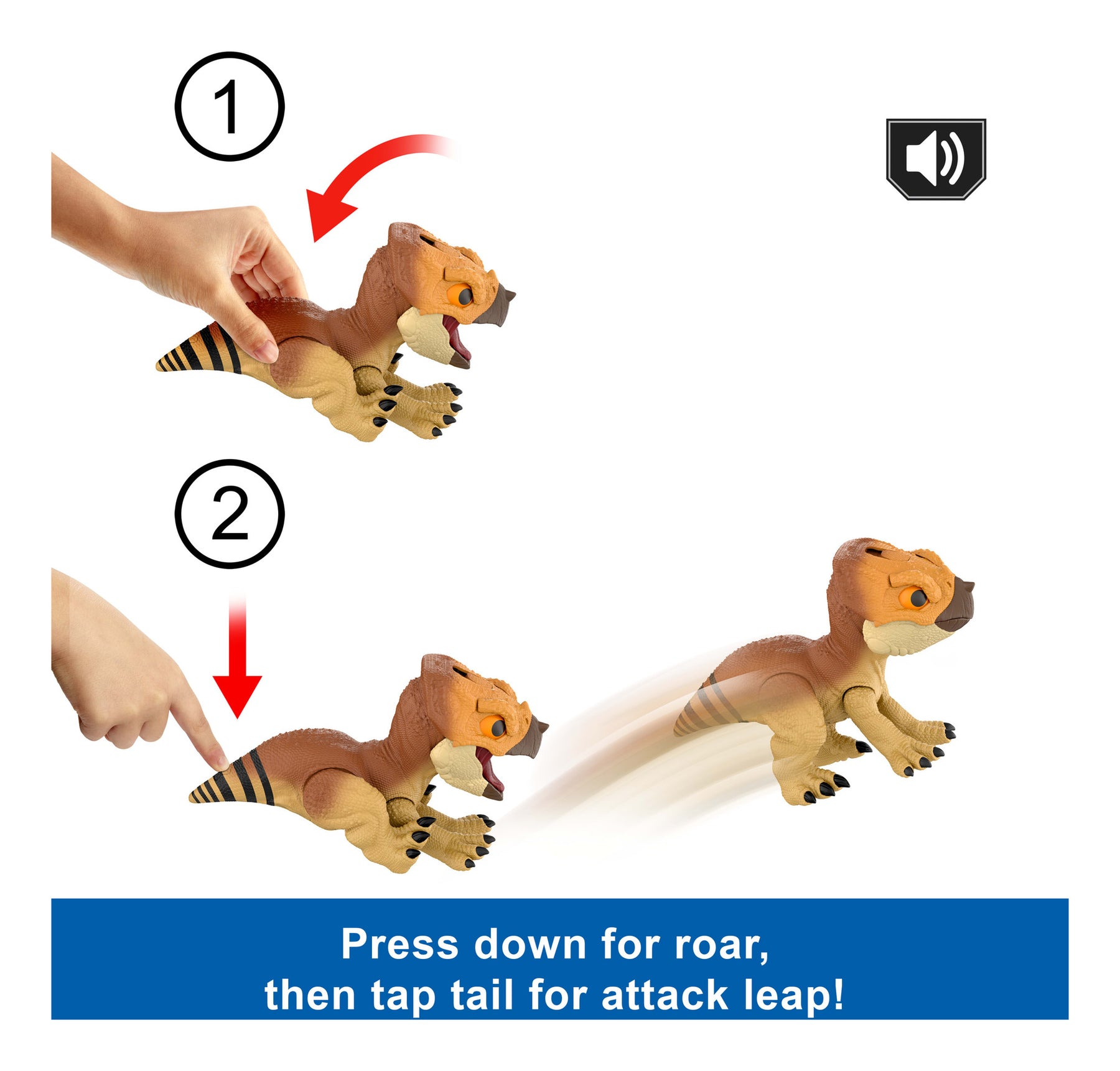 • Fierce friend. This active playmate is ready to defend its companion -- tap its tail and it leaps into action! Kids will love its protective play moves!