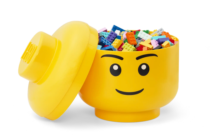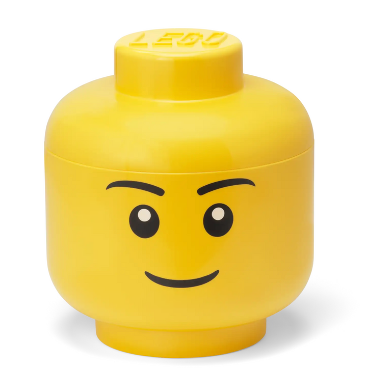 • Up-scaled, stackable storage head in durable polypropylene features LEGO® boy minifigure facial features.