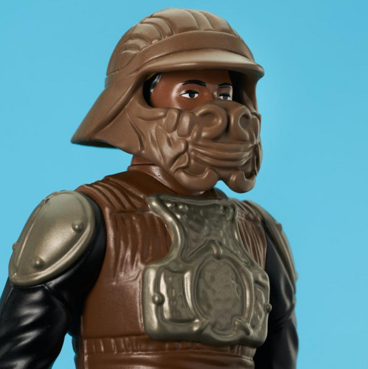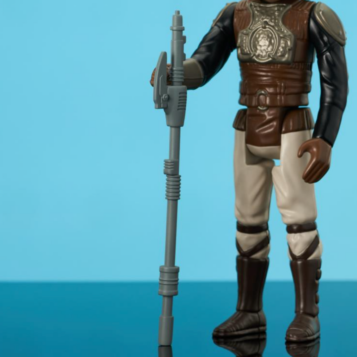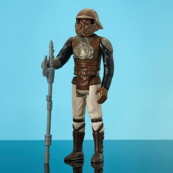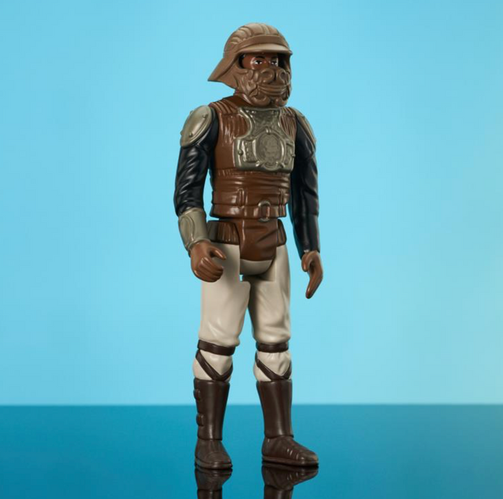 Go big or go home! Gentle Giant Ltd. returns to the original classic 96 Kenner figures with Lando Calrissian in his Skiff Guard disguise! Measuring approximately 12" tall, this vintage style figure is based on the original 1983 release, with removable helmet and vibro-axe, and comes packaged on an oversized retro-style blister card with a resealable clamshell.