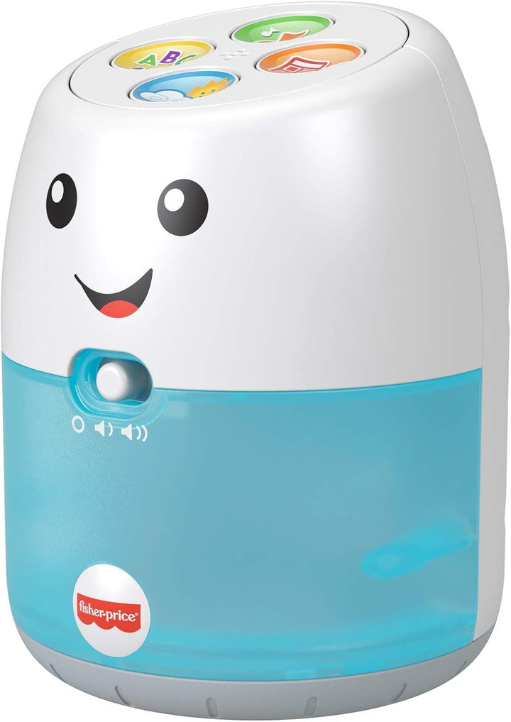 Its realistic hub design includes 4 buttons on top for babies and toddlers to press to hear animal sounds and a playlist that introduces a variety of musical styles, plus learning songs and phrases about counting, colours, the alphabet, and weather.