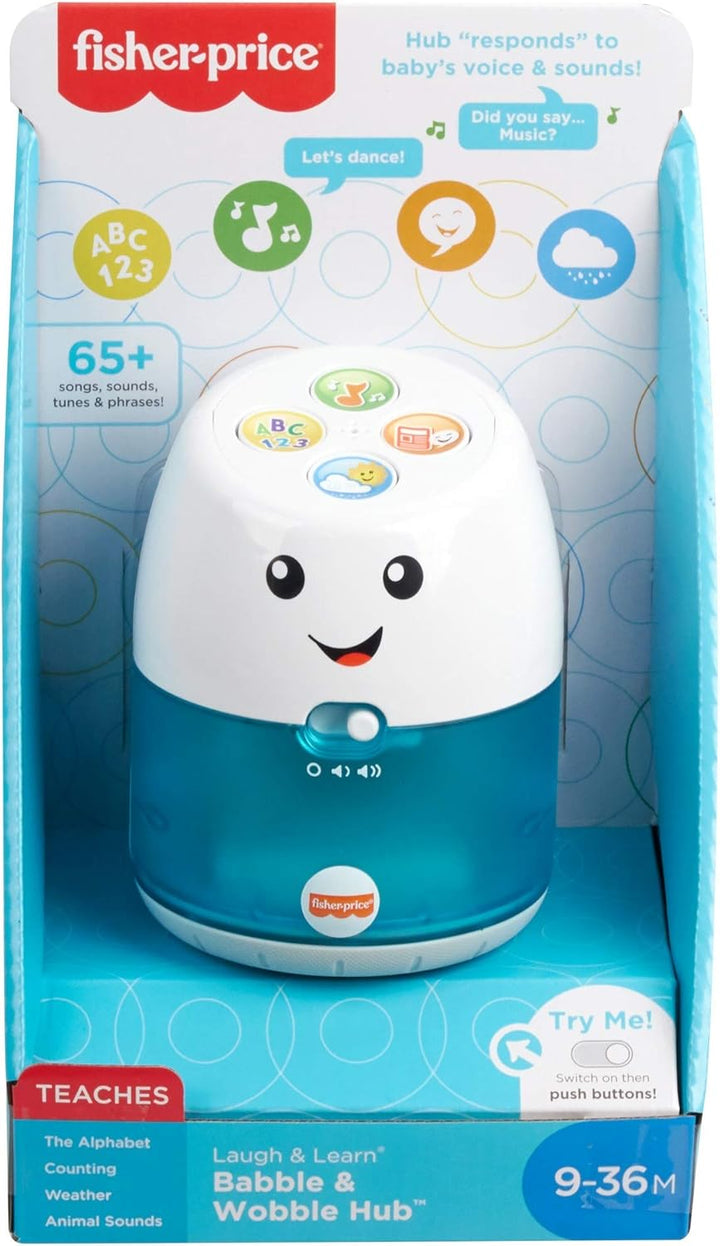 Everyone craves understanding... a friend who really hears you and responds to you with thoughtful questions like, “Did you say music?” When baby "chatters," the Laugh & Learn Babble & Wobble Hub toy "responds" with colourful lights, music, sounds and phrases.