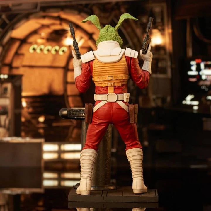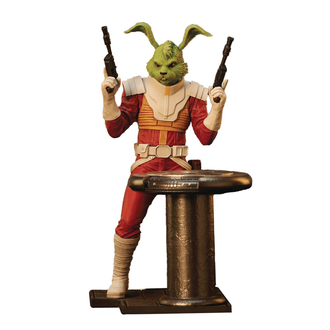 A Gentle Giant LTD release! He's the most unbelievable Star Wars character of all! Straight from the classic Star Wars comic books, the green-furred Lepi known as Jaxxon is the newest Premier Collection statue! Standing approximately 10 inches tall, with twin blasters drawn and dejarik table at his side, this sculpture of the rabbit-like captain of The Rabbit's Foot is exclusively available at Star Wars Celebration and is limited to only 1500 pieces. He comes packaged in a full-color box with a numbered certificate of authenticity.