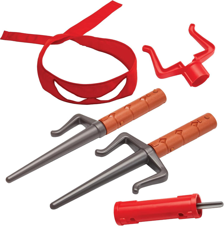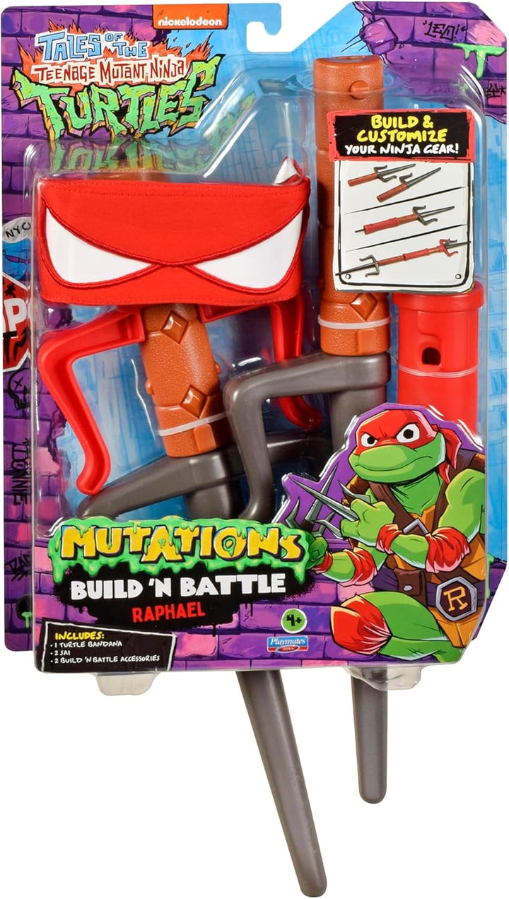 The Build N Battle Raphael Roleplay set includes Raph's twin sai, his red mask, a blade guard, and a blade connecter.